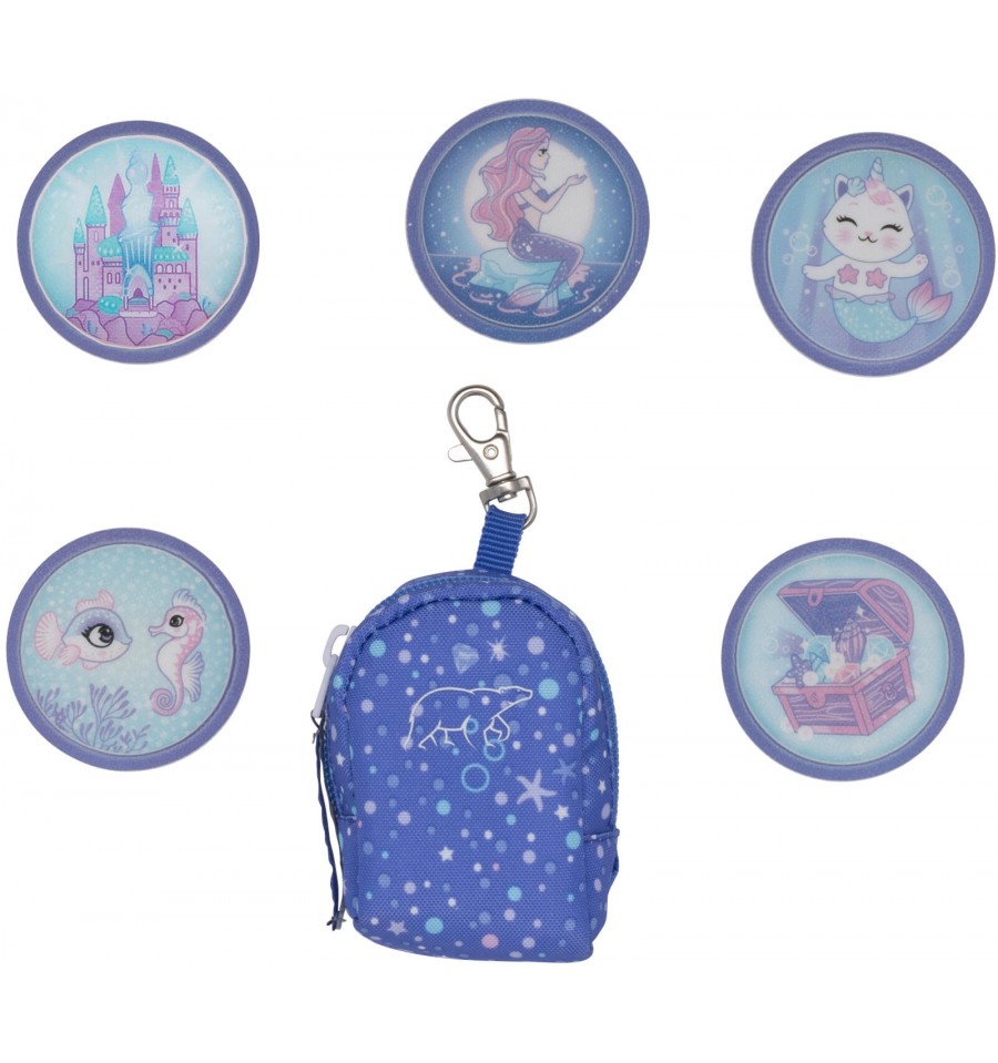 11. okrągłe dekoracyjne rzepy, które możemy wymieniać kiedy tylko mamy ochotę, umieszczone w mini plecaczku zawieszonym na breloczku