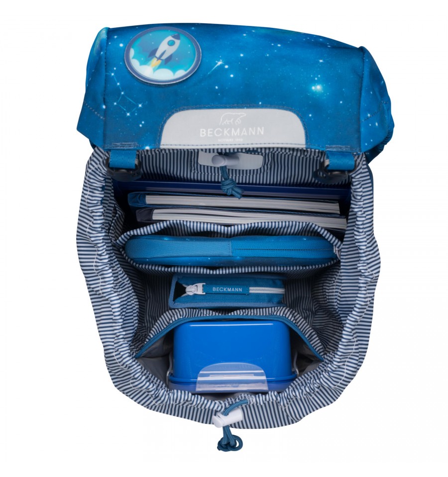 Piękny zestaw do pierwszej klasy Galaxy, idealna propozycja dla fanów przestrzeni kosmicznej. Piękna niebieska kolorystyka, odwracalna kieszeń na plecaku głownym, która w kilka sekund zmienia wygląd plecaka, wymienialne rzepy, nakrycie przeciwdeszczowe to nie wszystko co ten zestaw ma do zaoferowania.