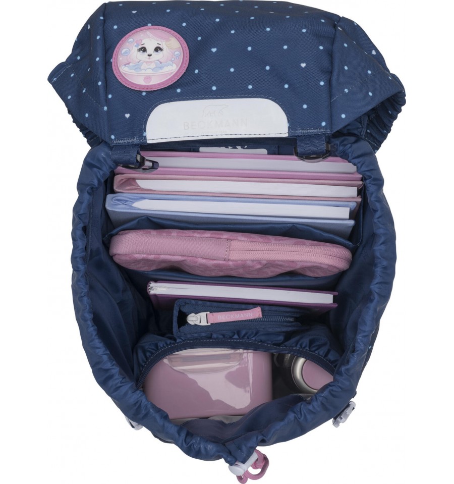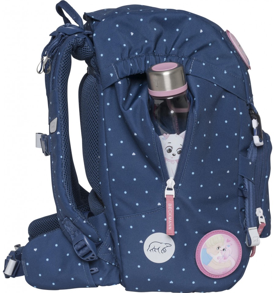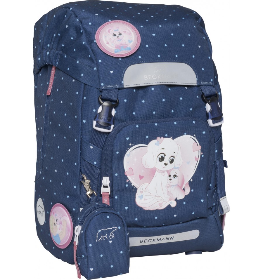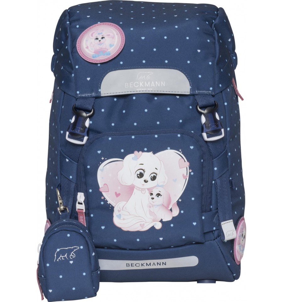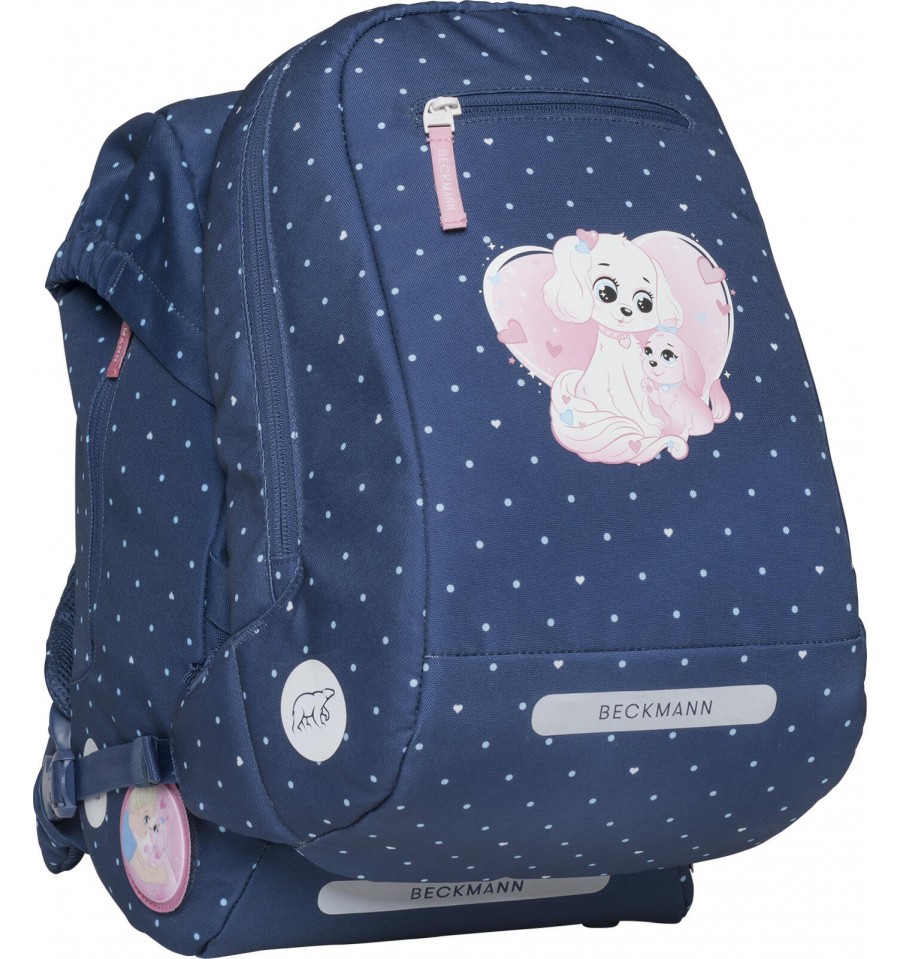 Plecak 22 litrowy Pet Friends Blue to piękny granatowy plecaczek z motywem uroczych piesków i delikatnym wzorem w serduszka i kropki.