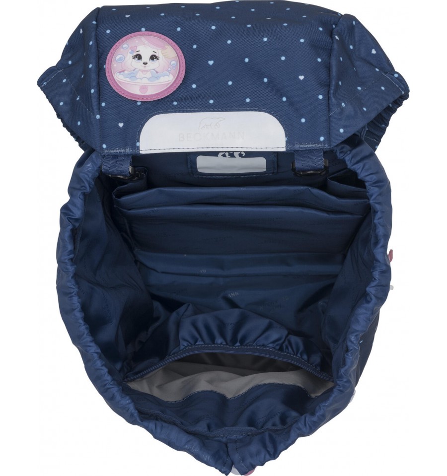 5. wewnątrz plecaka kieszeń na lunchbox, dwie kieszenie na zeszyty i podręczniki oraz przestronna kieszeń na pozostałe rzeczy, wszystko zprojektowane tak aby utrzymać ciężar blisko pleców