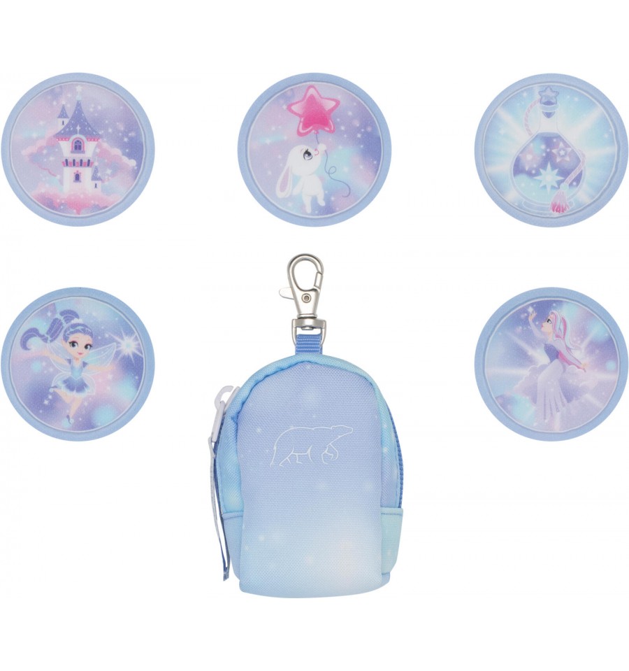 11. okrągłe dekoracyjne rzepy, które możemy wymieniać kiedy tylko mamy ochotę, umieszczone w mini plecaczku zawieszonym na breloczku