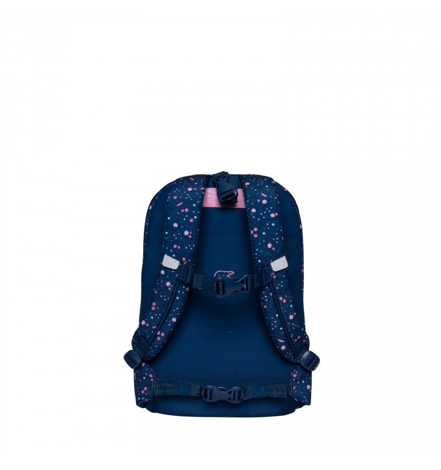 Plecak posiada odblaski, wydzielone miejsce na butelkę lub bidon wewnątrz, pasek na klatkę piersiową i biodra oraz regulowane paski na ramiona co czyni go idealnym na krótkie wycieczki, wyjścia na basen czy inne zajęcia pozalekcyjne.