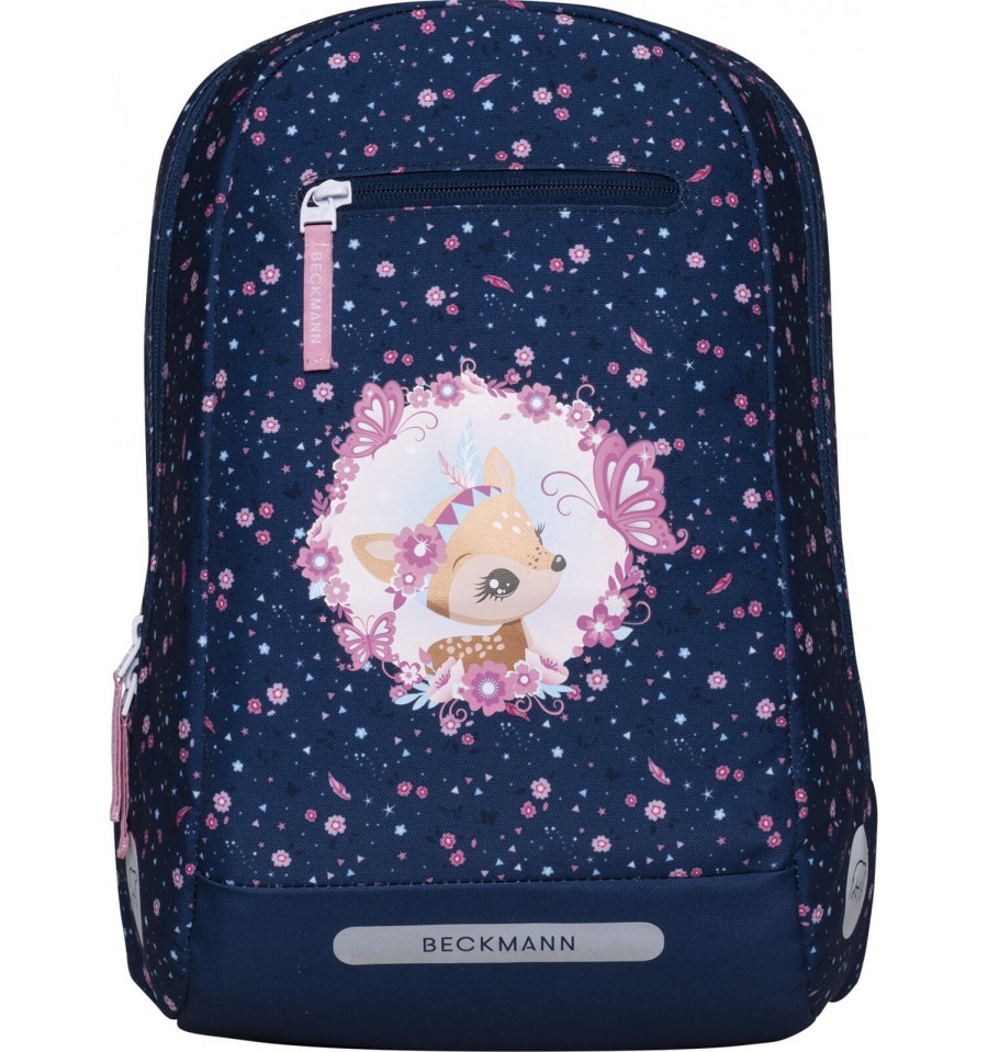 • Plecaczek Forest Deer Blue ma pojemność 12 litrów i niewielką wagę 350 gram. Wykonany jest w pięknym granatowym kolorze i delikatnym princie oraz motywem uroczej sarenki.