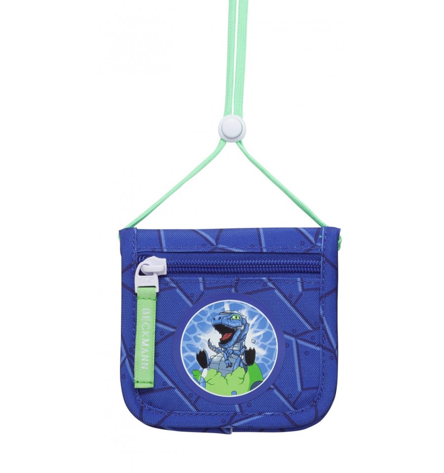 Praktyczny portfelik na drobiazgi na regulowanym sznurku, z miejscem na klucze; sprzodu mała kieszonka na zamek.