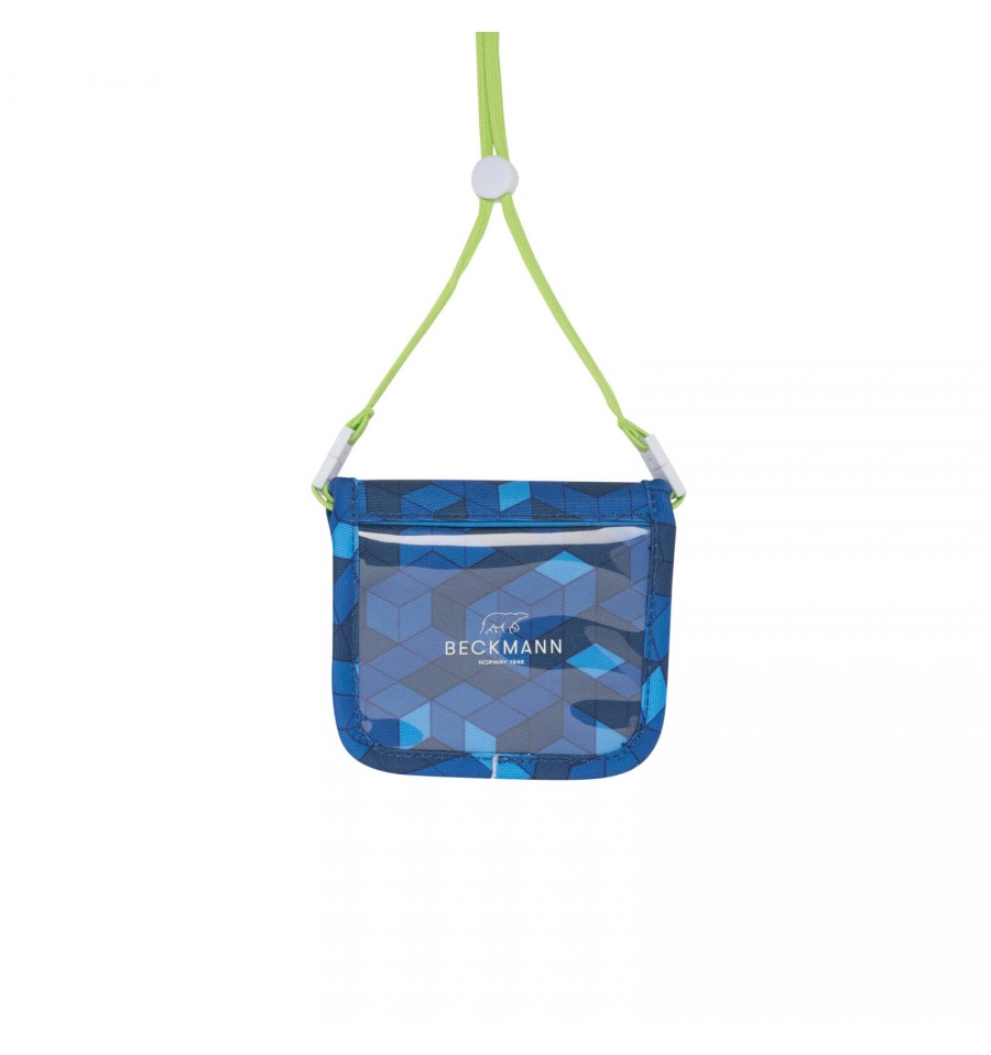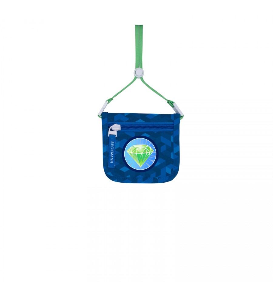 Praktyczny portfelik na drobiazgi na regulowanym sznurku, z miejscem na klucze; sprzodu mała kieszonka na zamek.