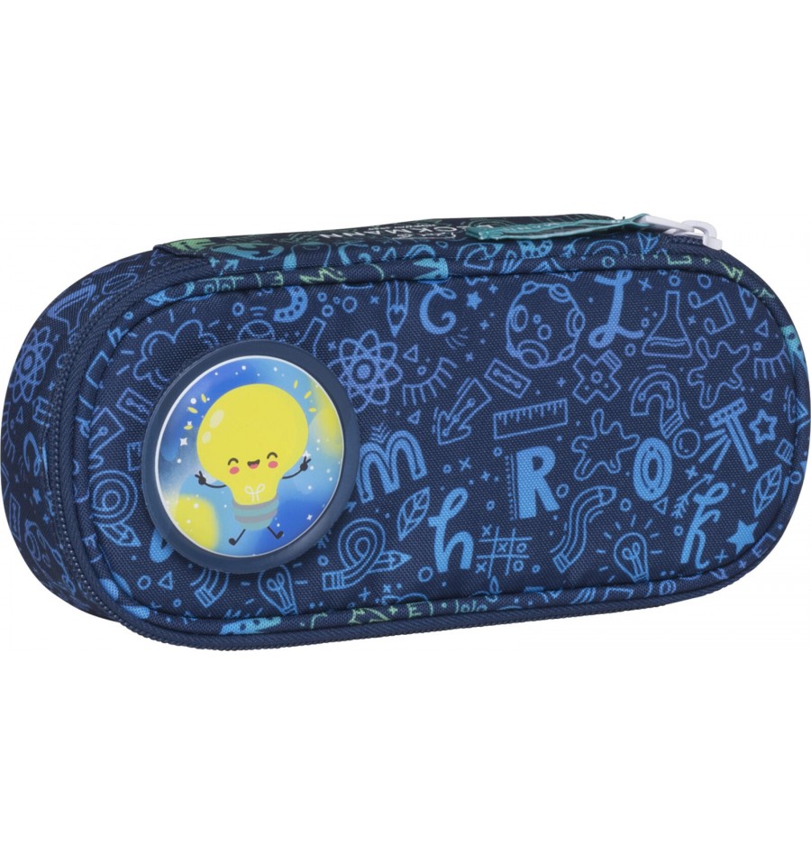 Piórnik owalny Science do klasy 1-3 idealnie pasujący do plecaka do pierwszej klasy Science. Usztywniany, z dodatkową małą kieszonką na zamek w środku oraz wydzielonym miejscem na długopisy i ołówki.