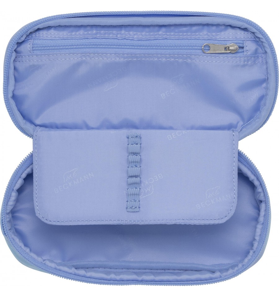 Piórnik owalny dla dziewczynki do klasy 1-3 idealnie pasujący do plecaka do pierwszej klasy Unicorn Princess Ice Blue. Usztywniany, z dodatkową małą kieszonką na zamek w środku oraz wydzielonym miejscem na długopisy i ołówki